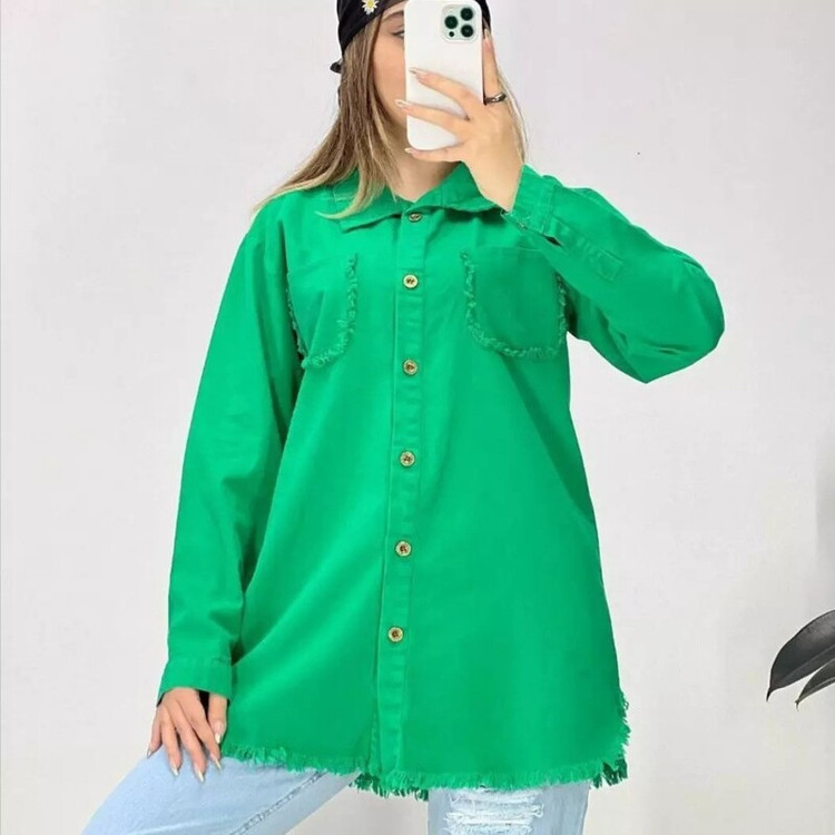 شومیز مانتویی جلو دکمه پیراهنی پایین ریش دخترانه و زنانه
