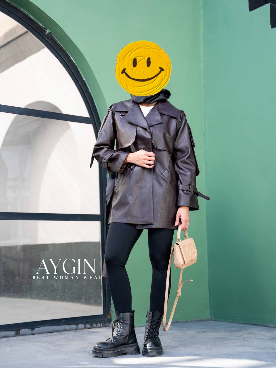 مانتو کتی چرم زنانه پاییزه زمستونه