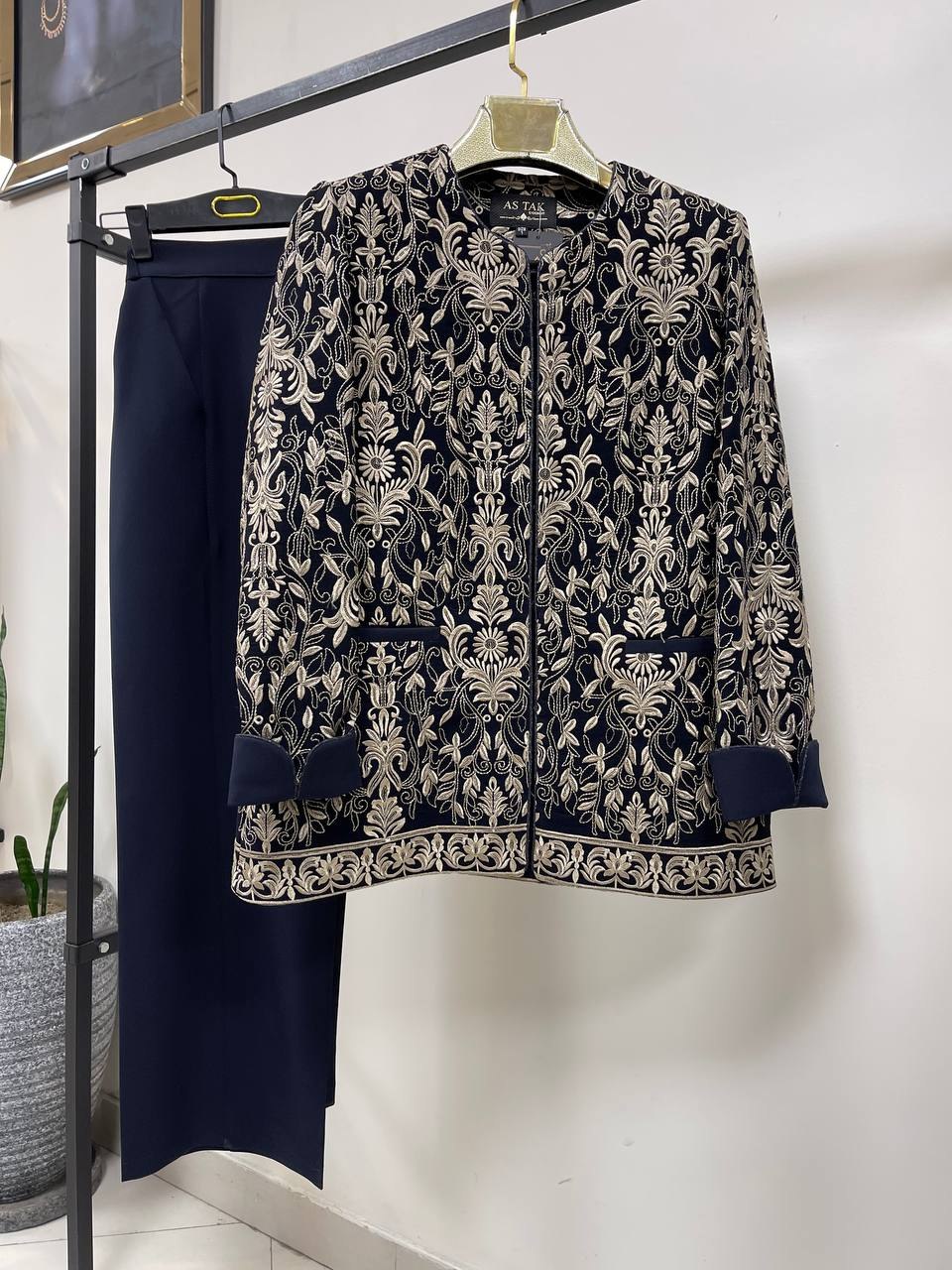 کت سوزن دوزی مخمل و شلوار کرپ مازراتی