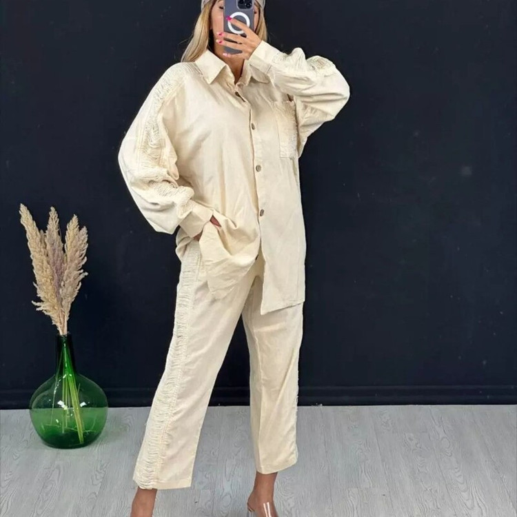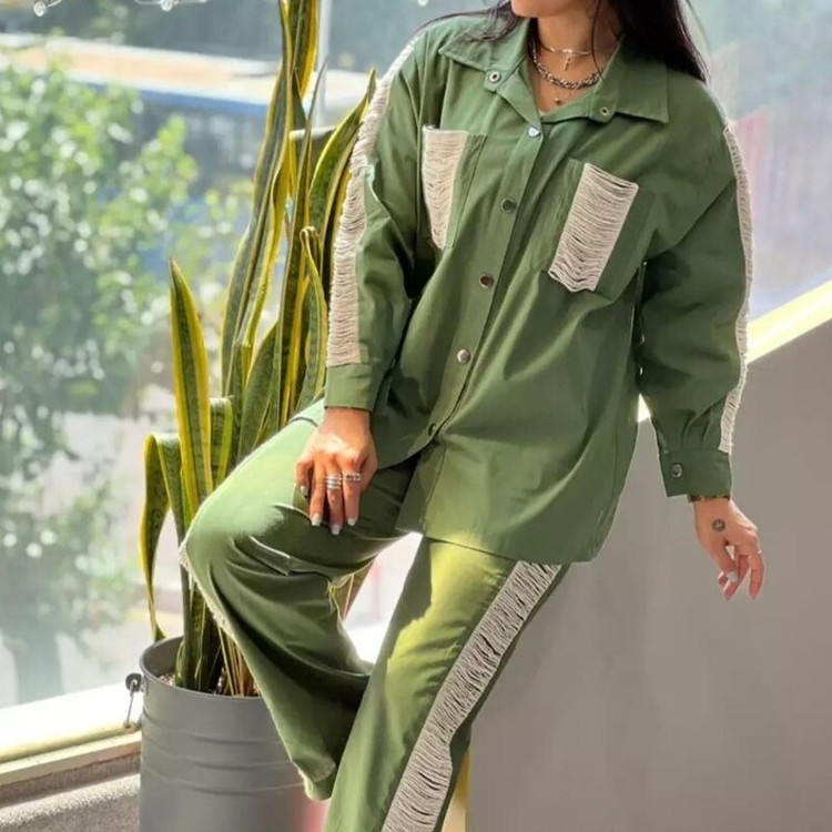 این کار ست شومیز و شلوار هستش با پارچه لینن تمام نخ سایز کار دو سایز از 36 تا 42 مناسبه و برای عید کار خیلی شیکی هستش 8 تا هم رنگ بندی داری