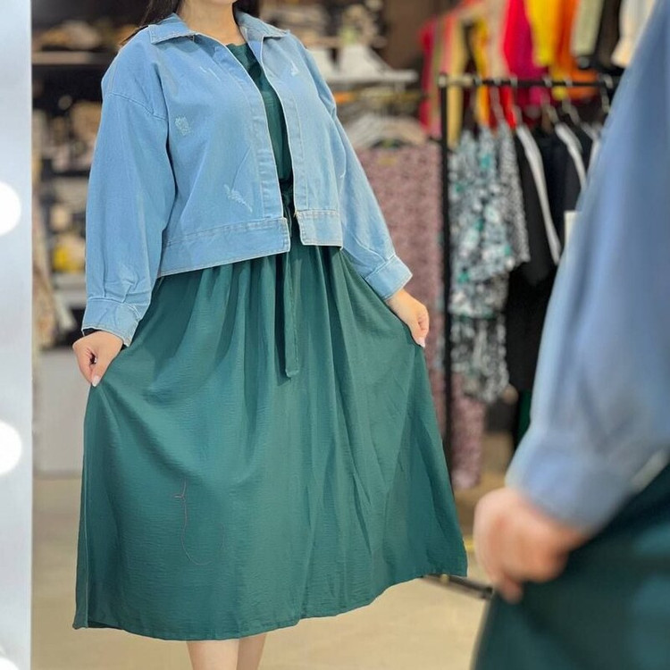 مانتو دو تیکه کت جین و سارافون بابوس هستش جنسش خنک و تابستانه هستش. فری سایز از 36 تا 48 مناسبه رنگ بندی 3 رنگ داره نارنجی و صدری و رنگ سبز کله غازی موجوده بازم سوالی داشتید حتما اول بپرسید در خدمتم